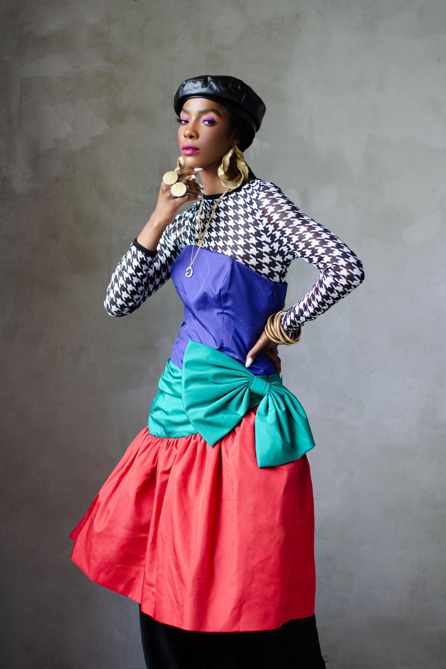 Vintage 1980's Saks Fifth Ave Color Block Bow Dress