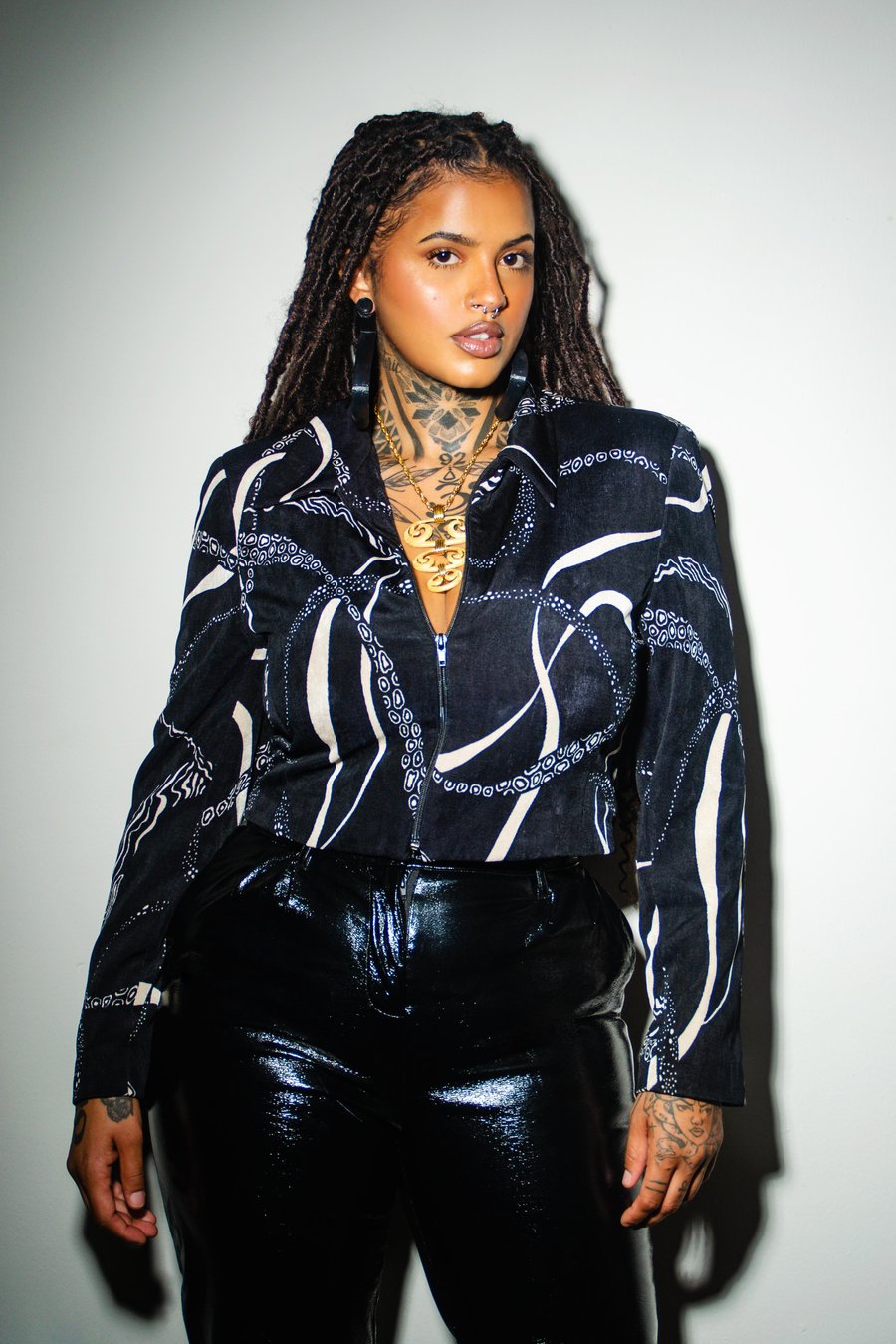 Vintage Amaya Cropped Zip Mixed Print Lines Blazer