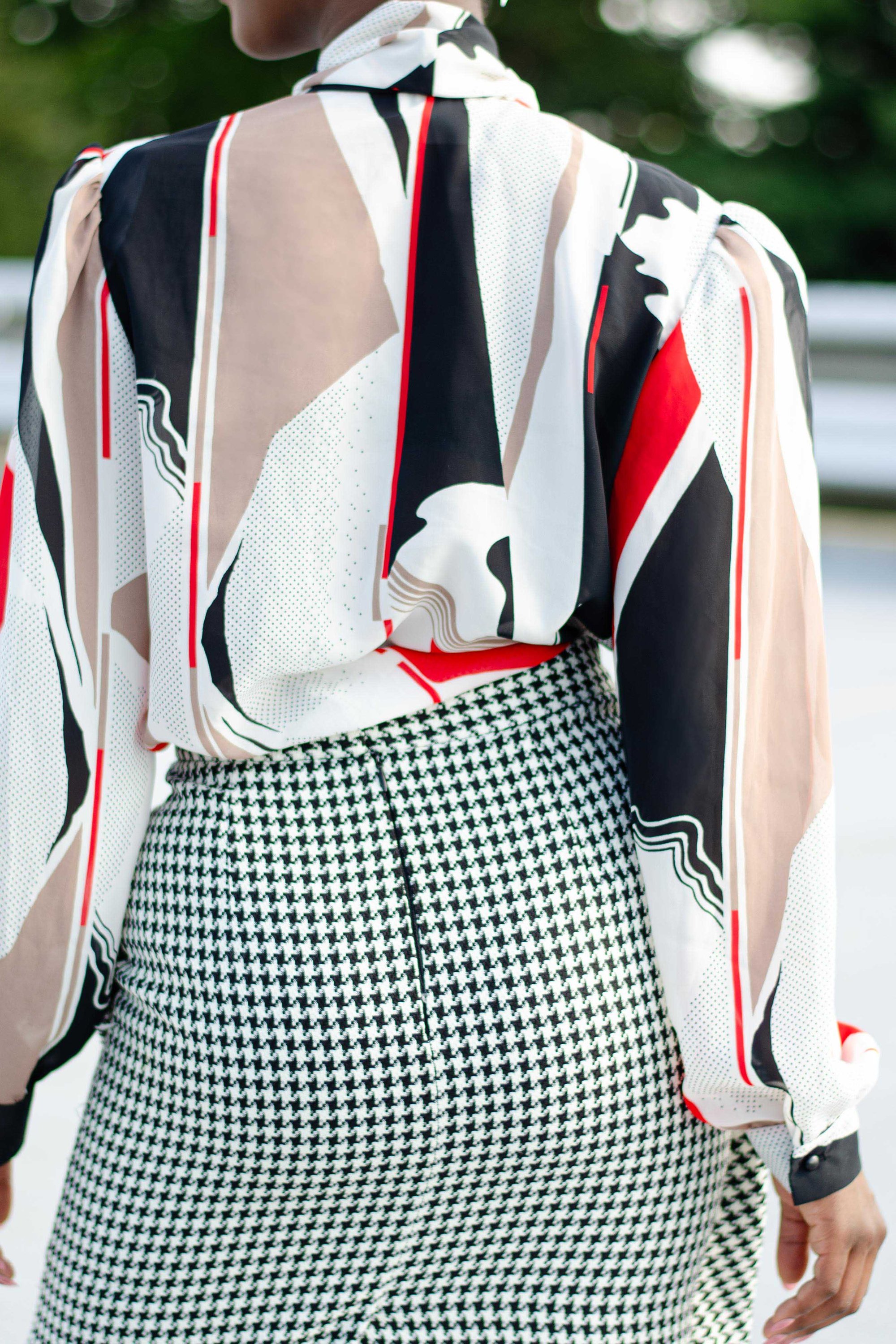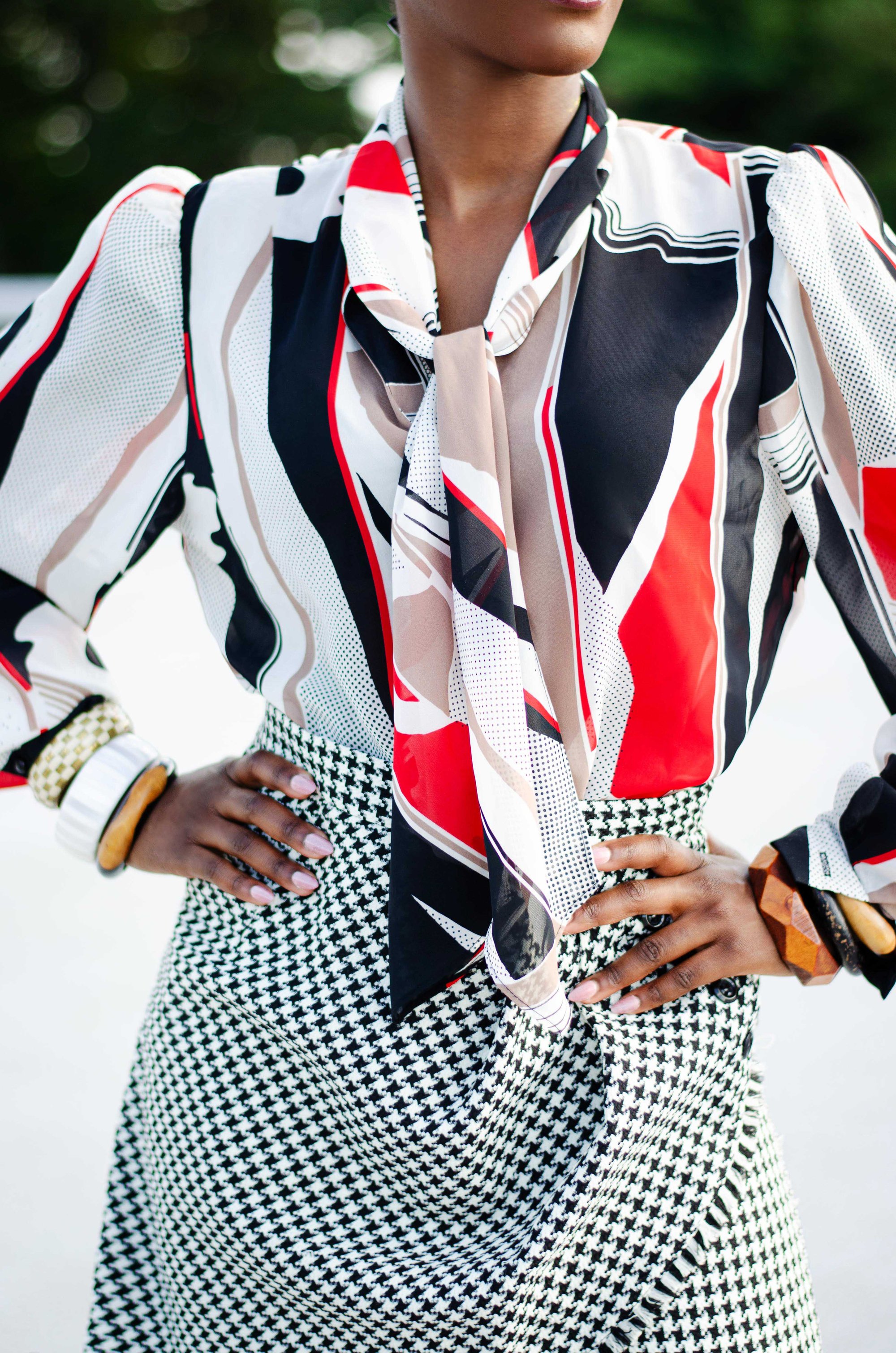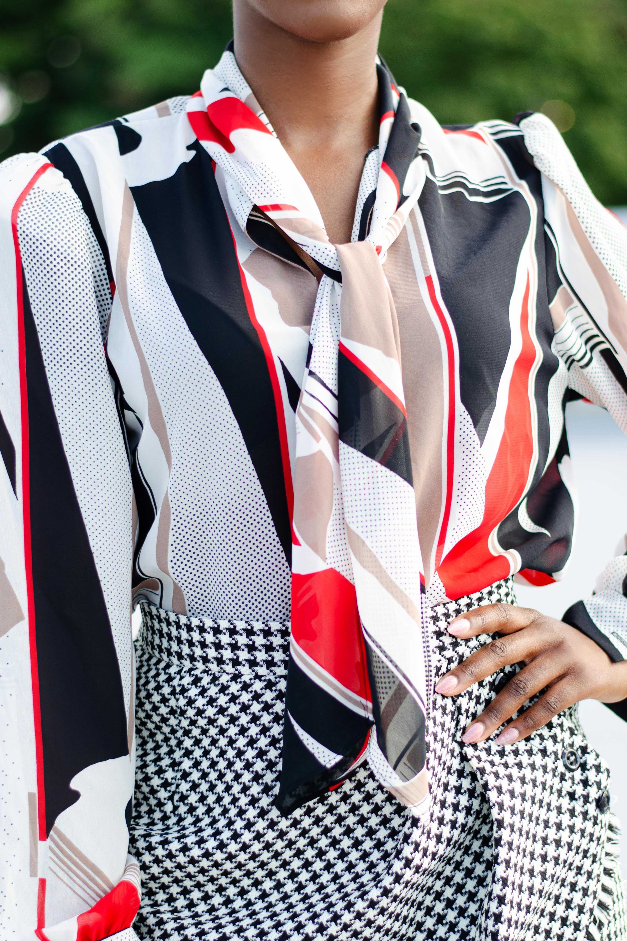 Vintage Nashama Abstract Tie Neck Semi Sheer Blouse