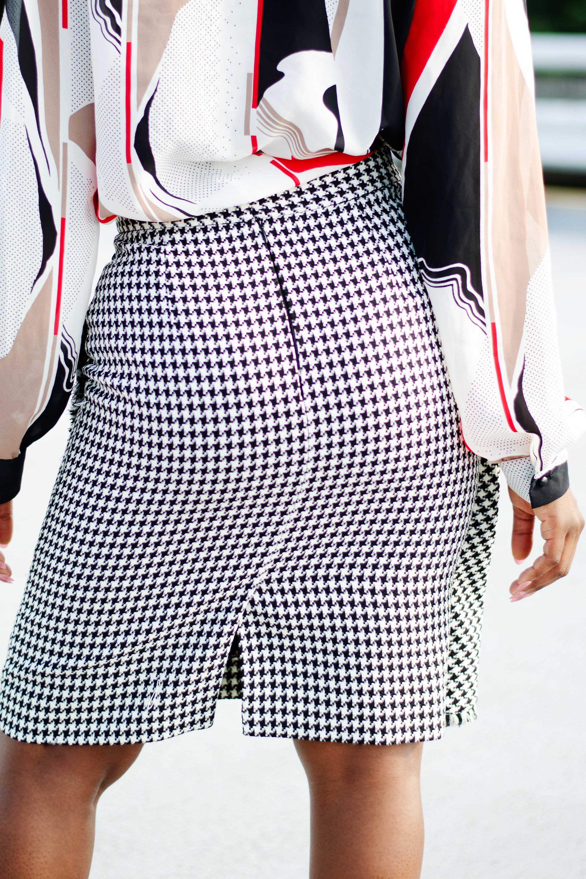 Vintage Black & White Houndstooth Skirt With Fringe Overlay