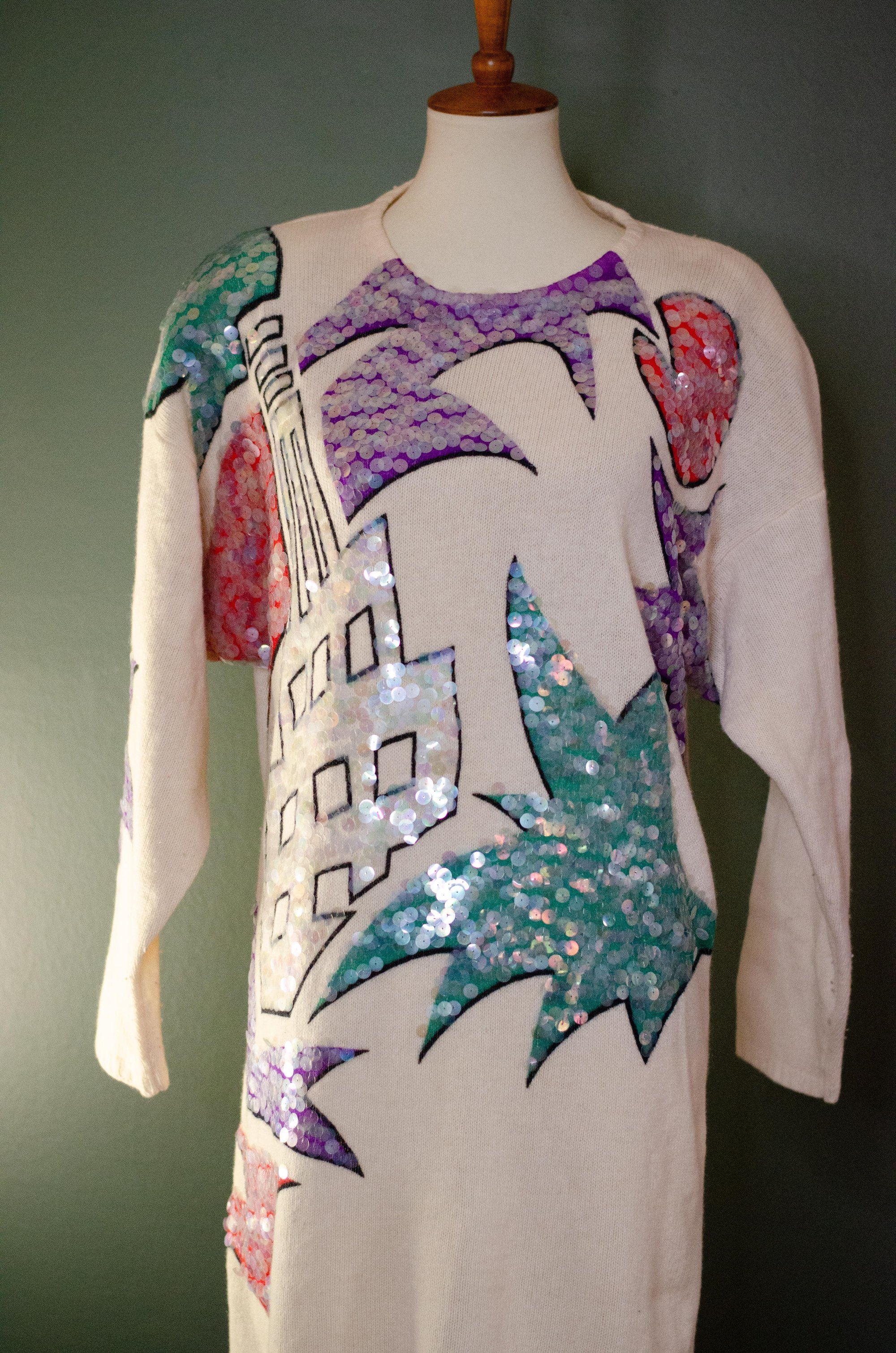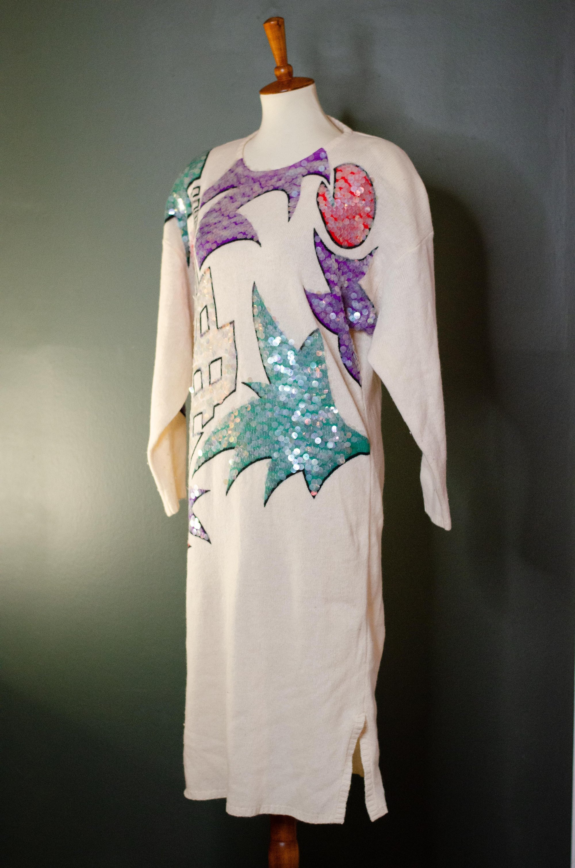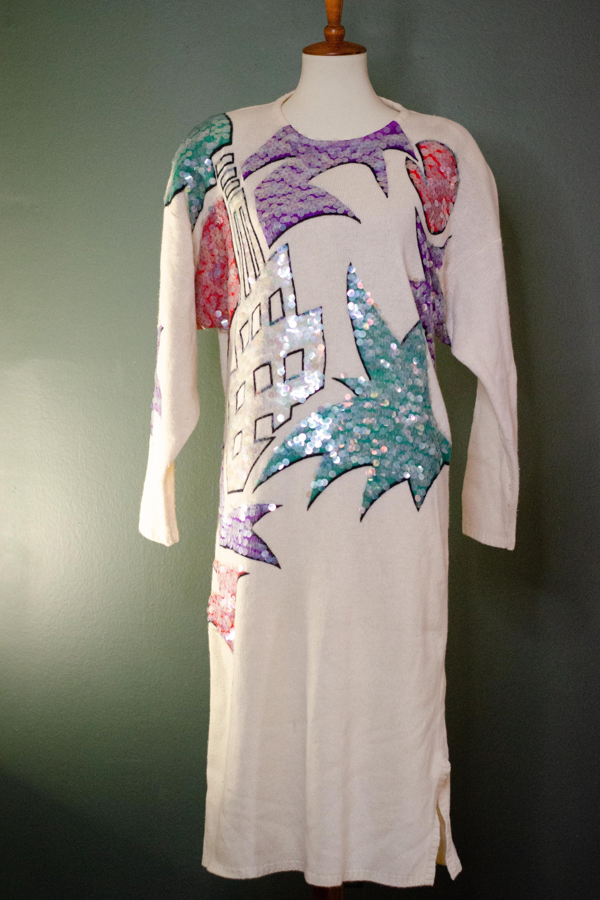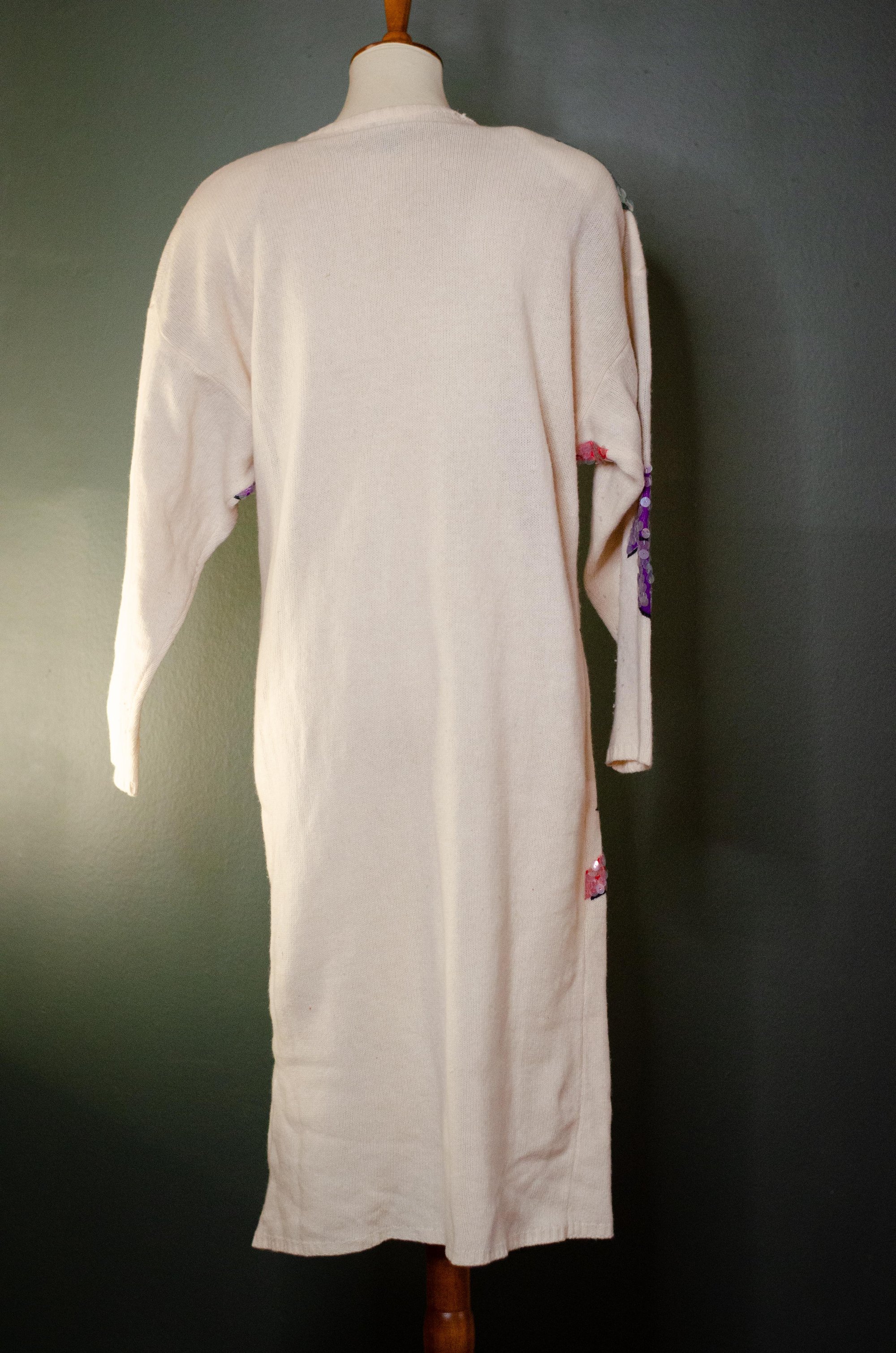 Vintage Cream Sweater Dress W/ Colorful Paillettes