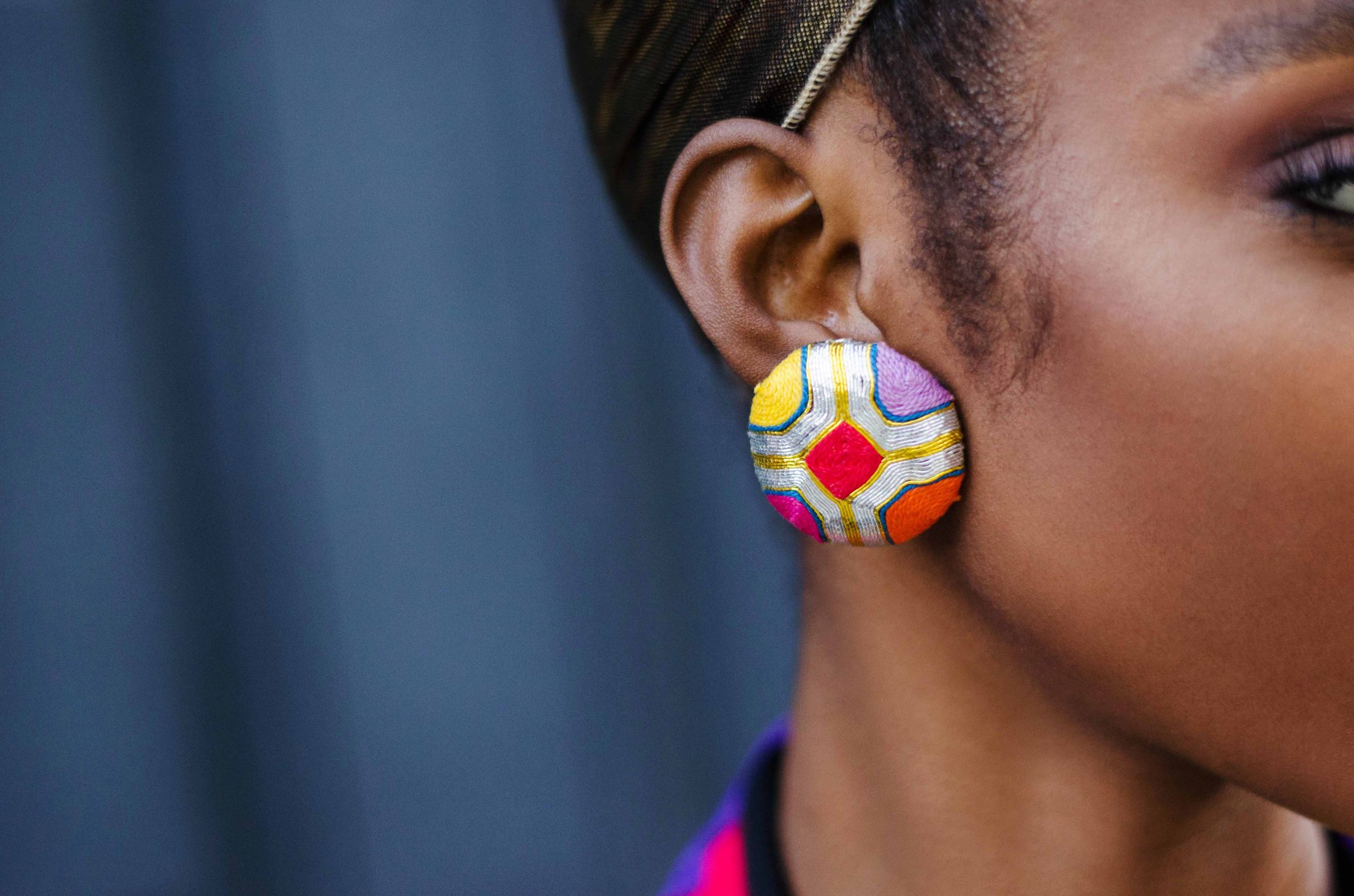 Vintage Karelle Bold Metallic Threads Large Stud Earrings