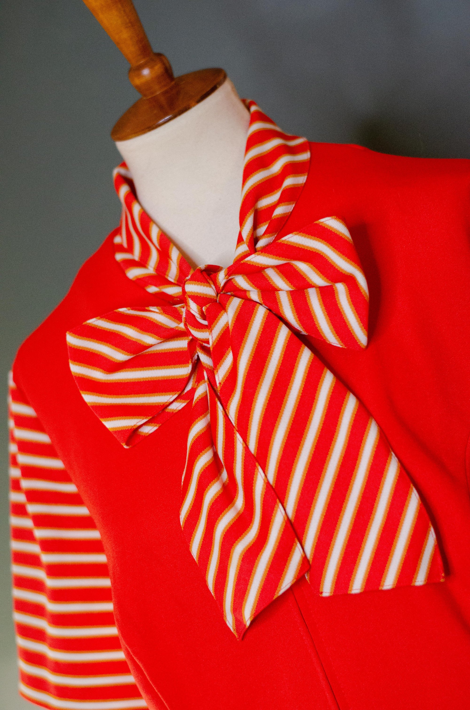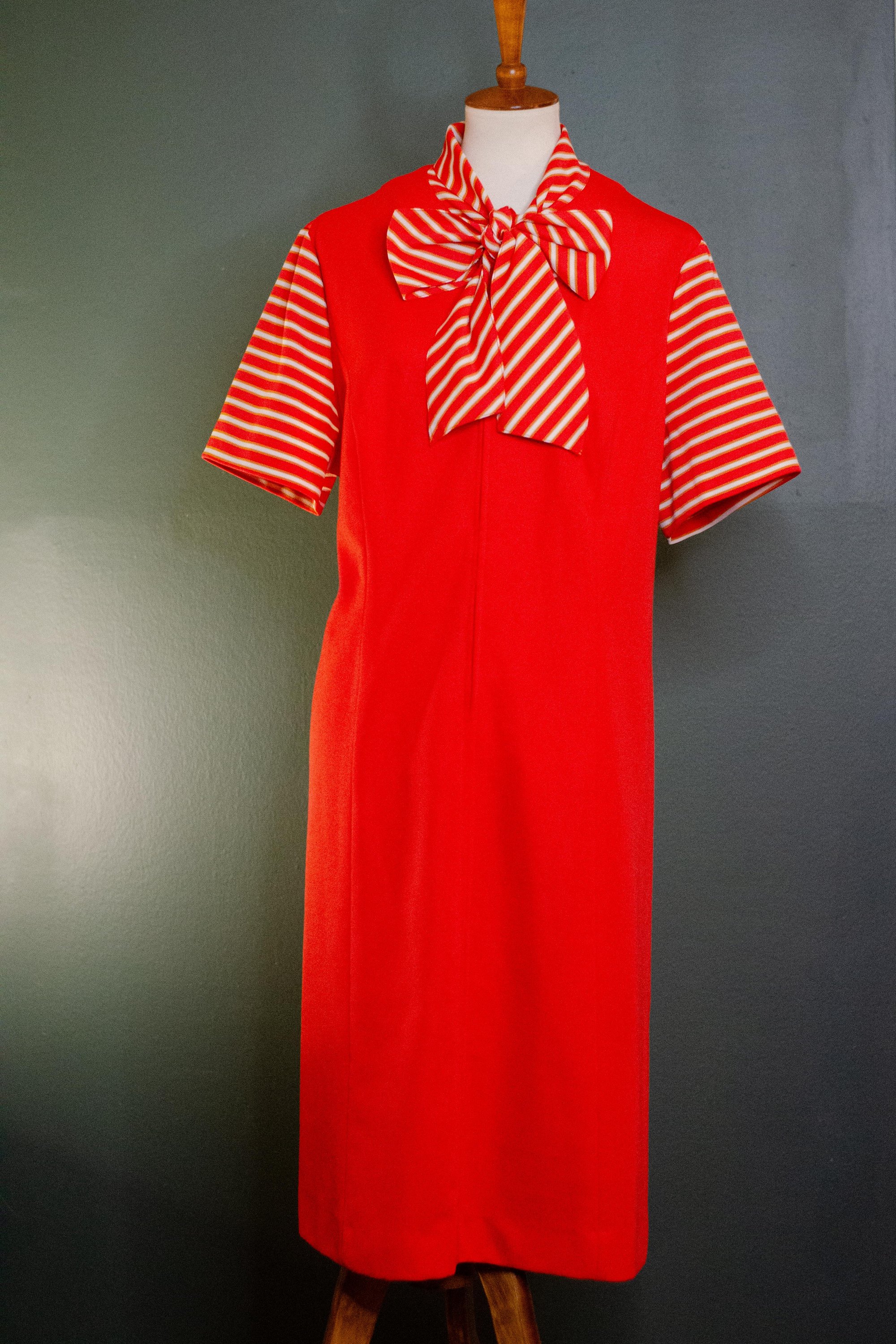 Vintage 1970's Tomato Orange Zip Front Bow Tie Dress
